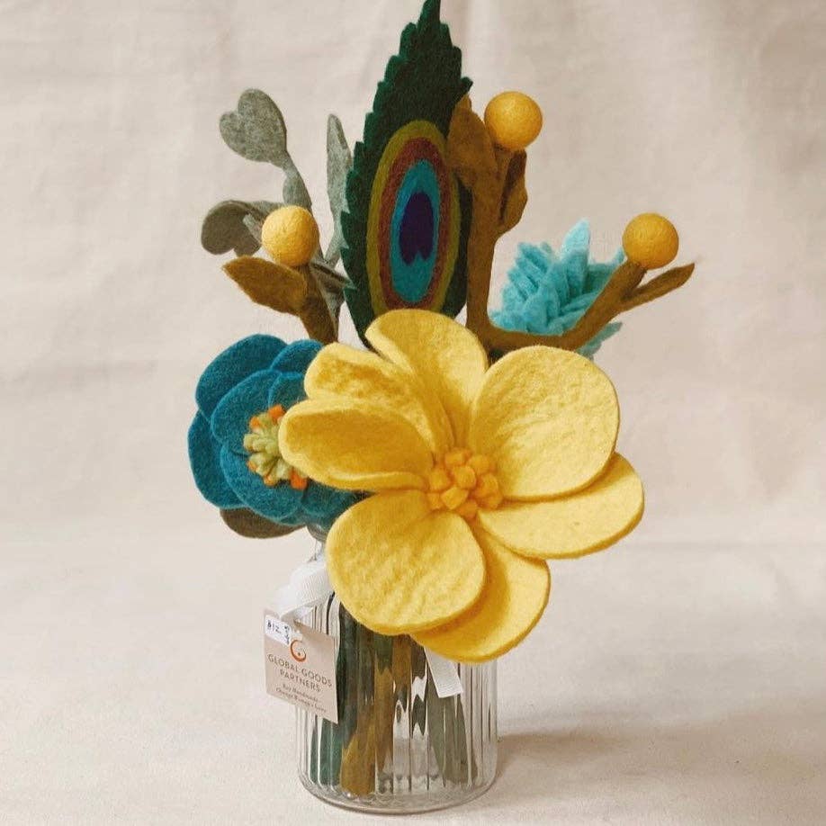 The bright and tropical Felt Magnolia Flowers are a cheery addition to any home. Bundle the Magenta, Pink, Yellow & White stems together with a Calathea Leaf to create a beachy bouquet. Each bloom has layered petals and a tufted yellow center that have all been dyed, cut and stitched by hand. The bendable wire stems are simple to manipulate into a bouquet or flower display.