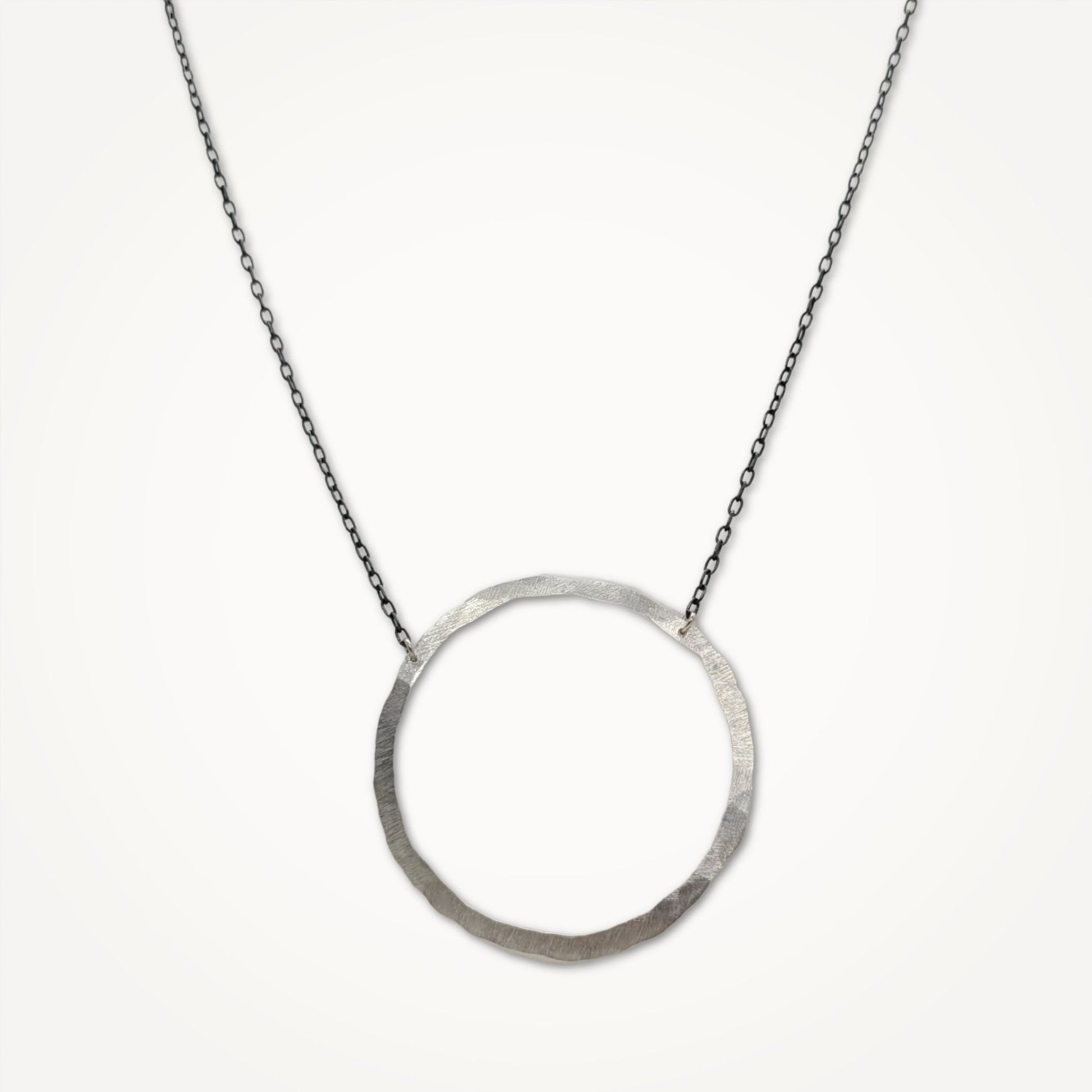 We call these hoops "organic" due to the unique texture and shape achieved through the hammering process. A simple and stunning handmade hoop focal oxidized to a rich black patina.