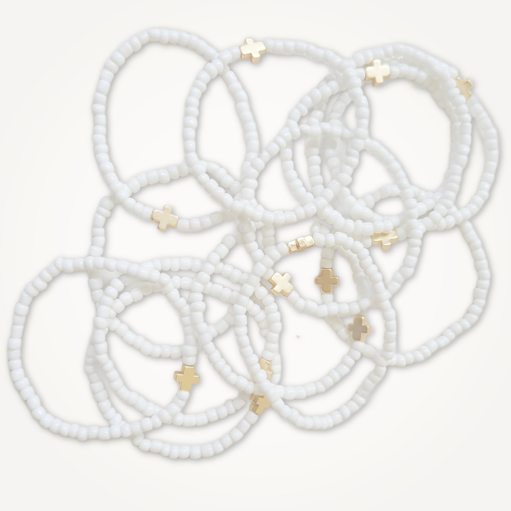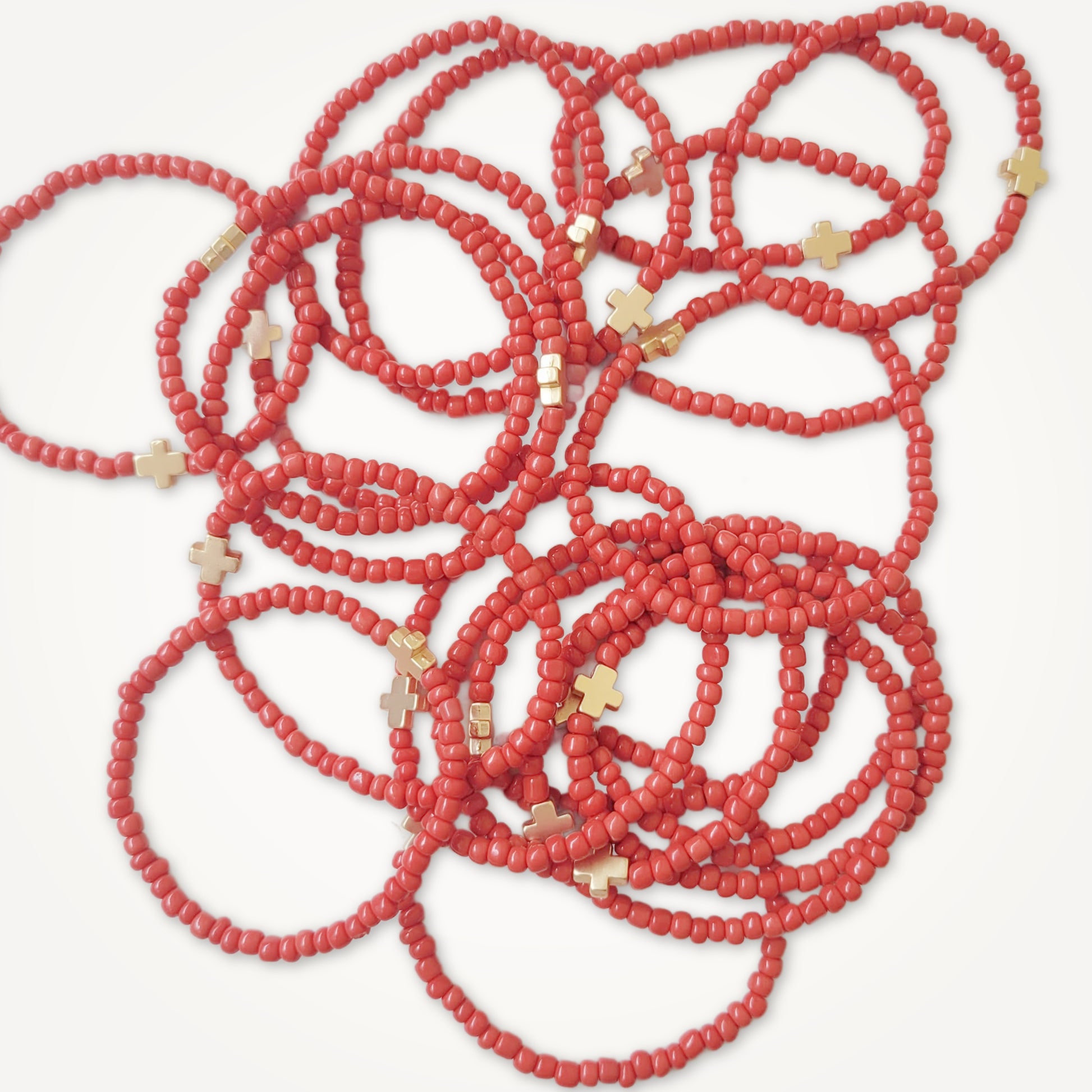 Get ready to add a pop of style to your outfit with our Swiss Cross Bracelet! Available in various colors, this beaded stretch bracelet features a metal Swiss cross and is perfect for any occasion. Comfortably fits most wrists.